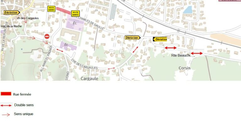 - Une déviation à double sens sur une portion du chemin des Cargaules, depuis l’avenue Charles de Gaulle en direction des Combes.