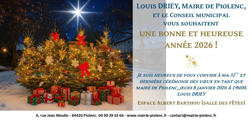 Le Maire de Piolenc et le Conseil municipal vous souhaitent une bonne et heureuse Année 2026