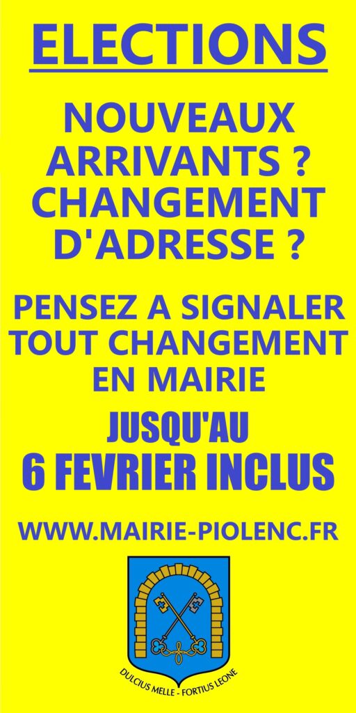 Nouveaux arrivants à Piolenc ? Changement d’adresse ? Pensez à vous inscrire sur les listes électorales de la commune jusqu’au 6 février inclus.